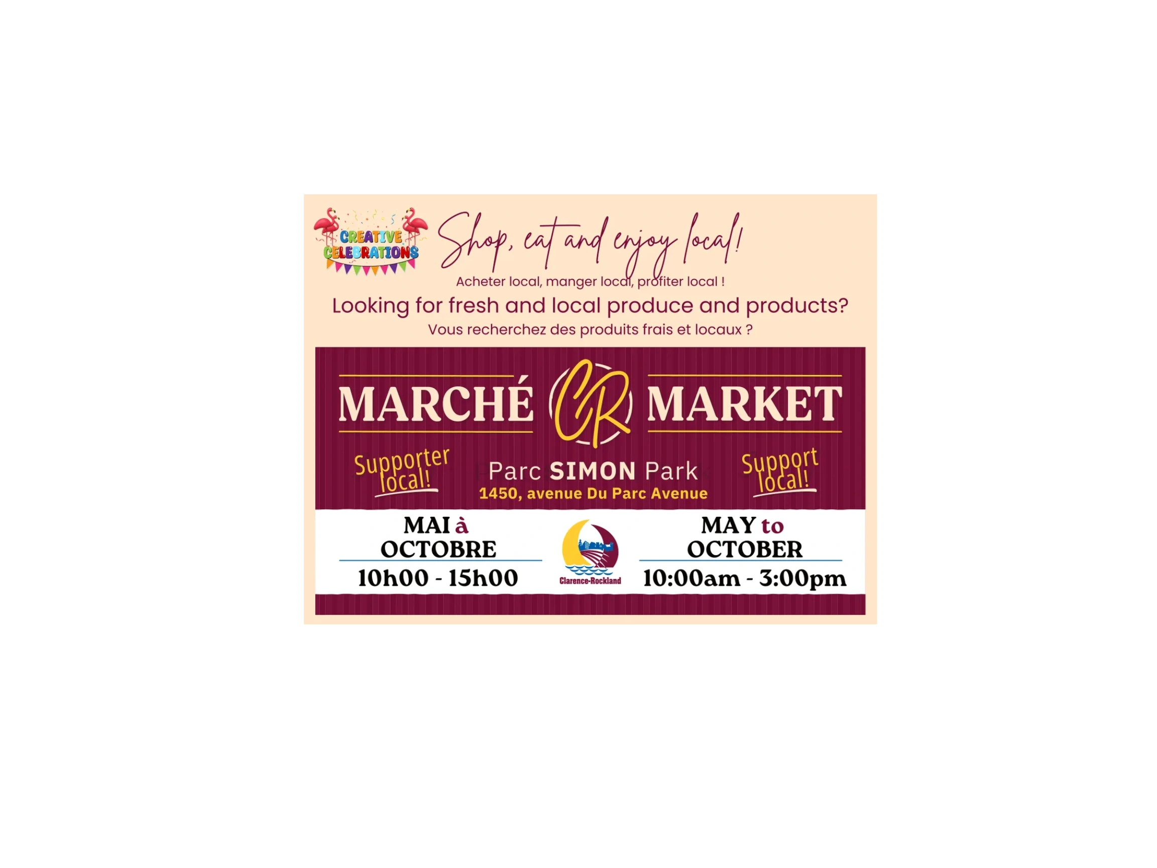 Since 2024, the CR Market has retained the services of Chantale Stucker, owner and founder of Creative Celebrations, which has been operating in the municipality for several years. Her business specializes in events. She has also added to her arsenal the Frozen Flamingo ice cream and candy truck, which has been serving up delicious treats to the community for the past few years. Chantale will take on the role of Market Lead for the year 2025, and we're confident that her addition to the team will enable the market to grow exponentially. Please join us in welcoming Chantale to the team!